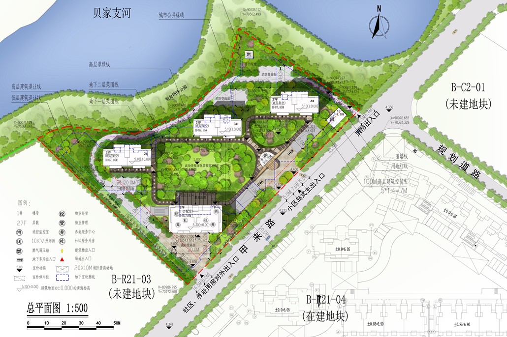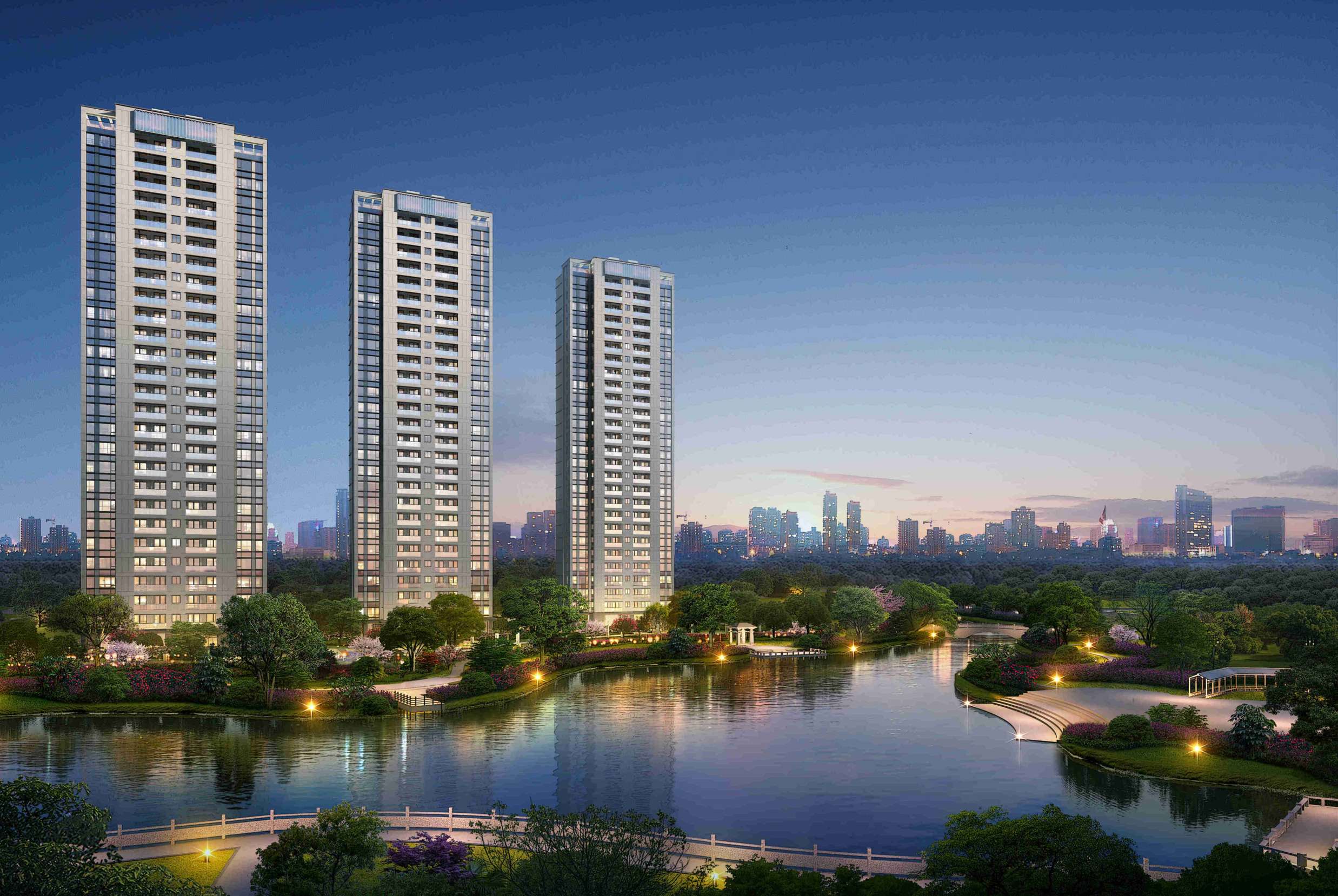 整个项目占地1.13万方,总建面积约4.99万方,地上约3.38万方,地下约1.51万方。由4幢27层高层围合而成,其实1号楼是自持,2、3、4号楼采用一字排开的布局,使得公园的景观资源能渗透进项目内,最大化利用了公园的景观资源,从来名贵,必居于湖畔。并且,古人云,临湖而居,尽得财气。