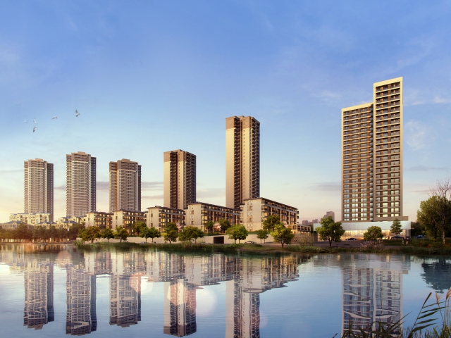 项目二期总占地约56亩,总建筑面积约12.4万方,住宅容积率2.562,绿化率约40%。由5栋高层和5栋叠墅以及1栋公寓、1栋独立商业组成,共有1000余户。现在在售产品完美的做到了人车分流设计,车位比约为1:1,基本可以保证每户至少一个车位。建筑风格上将新亚洲风格和现代典雅风格完美结合。